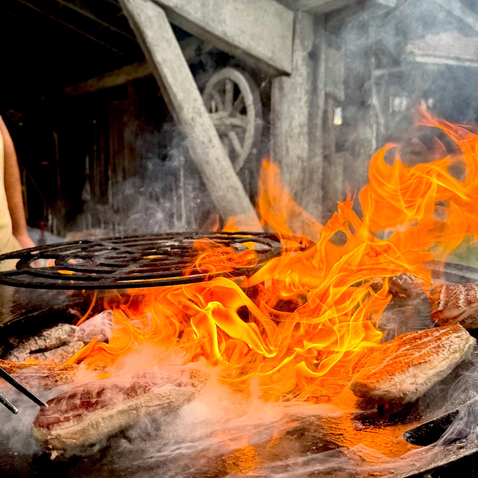 Le principe est simple : allier la convivialité d’une cuisson au feu de bois avec la richesse des produits du terroir. Autour du brasero, les convives ont découvert des viandes savoureuses grillées à la flamme, sublimées par des accompagnements préparés à partir de produits frais et locaux. Une expérience sensorielle où la gourmandise se mêle à l’authenticité.